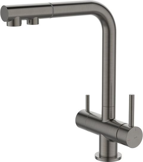 - Смеситель Umbra в цвете графит – стильный дизайн и многофункциональность, необходимая на современной кухне. Удобная эргономичная ручка, питьевая вода из отдельного встроенного канала для фильтрованной воды и выдвижной излив – детали, которые сделают ежедневные хлопоты приятными.