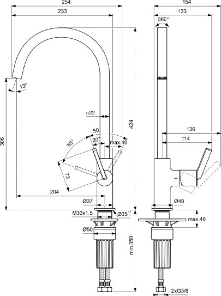 Характеристики смеситель для кухни Ideal Standard (BD411AA)