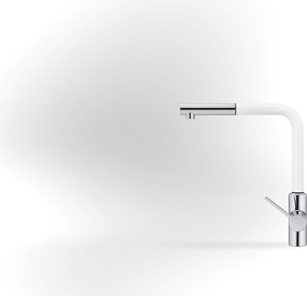 Смеситель для кухни Kludi L-Ine 408519375 с выдвижным, поворотным изливом, материал - латунь, цвет - белый матовый/хром.