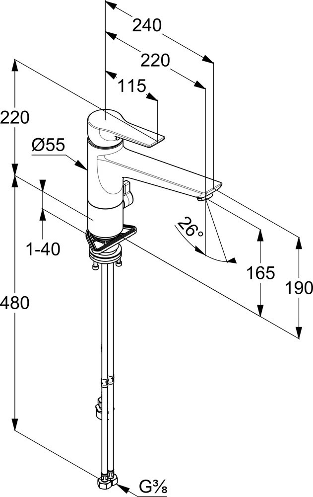 - гибкая подводка G 3/8