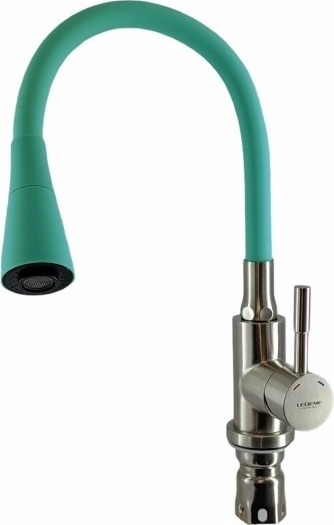 Смеситель для кухни Ledeme L74199-11 с гибким, поворотным изливом, материал - нержавеющая сталь, цвет - бирюзовый/сатин.