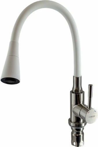 Смеситель для кухни Ledeme L74199-3 с гибким, поворотным изливом, материал - нержавеющая сталь, цвет - белый/сатин.