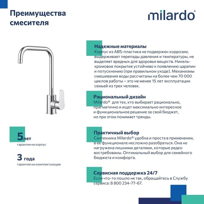 Описание смеситель для кухни Milardo POLSBL0M05