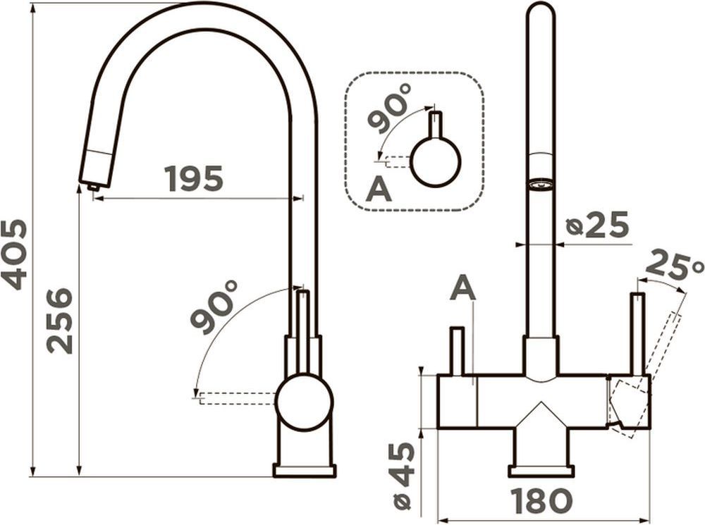 - Особенности: подключение фильтра для очистки воды PURE LIFE®, смеситель из нержавеющей стали