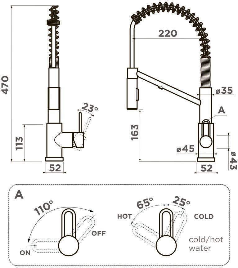• Смеситель 4 в 1: функция подачи холодной/горячей воды, возможность подключения фильтров для очистки, наличие гибкого шланга и функции переключения воды на 2 режима (струя и душ);