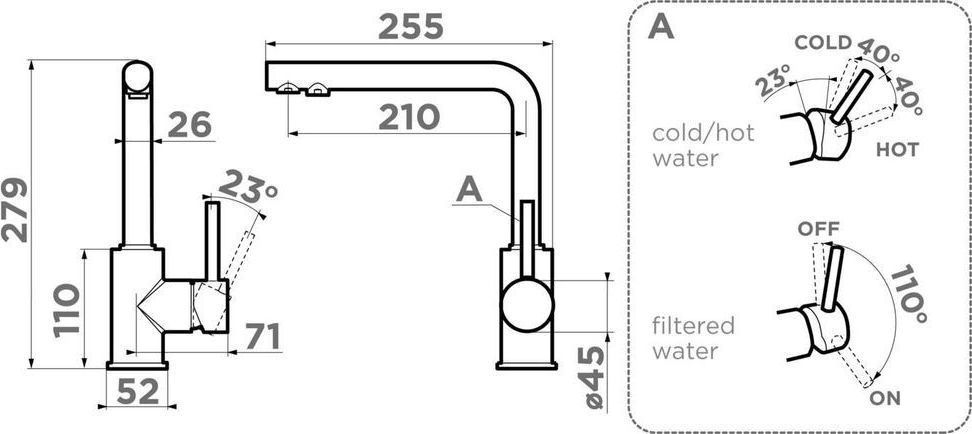- Новая удобная технология системы ручки "2 в 1 Multi" - позволяет переключить с водопроводной на фильтрованную воду в одно касание;