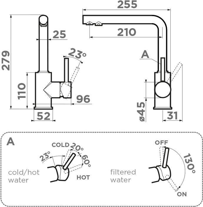 - Новая удобная технология системы ручки "2 в 1 Multi" - позволяет переключить с водопроводной на фильтрованную воду в одно касание;