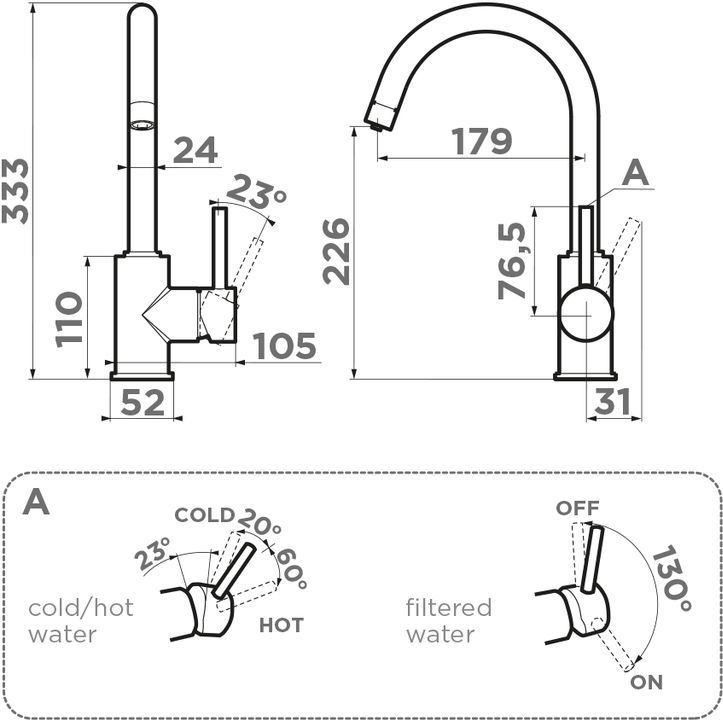 - Новая удобная технология системы ручки "2 в 1 Multi" - позволяет переключить с водопроводной на фильтрованную воду в одно касание;