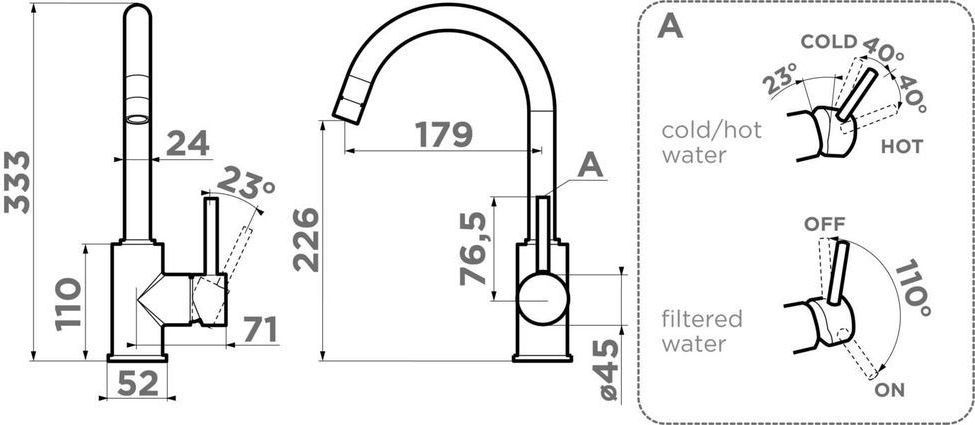 - Новая удобная технология системы ручки "2 в 1 Multi" - позволяет переключить с водопроводной на фильтрованную воду в одно касание;