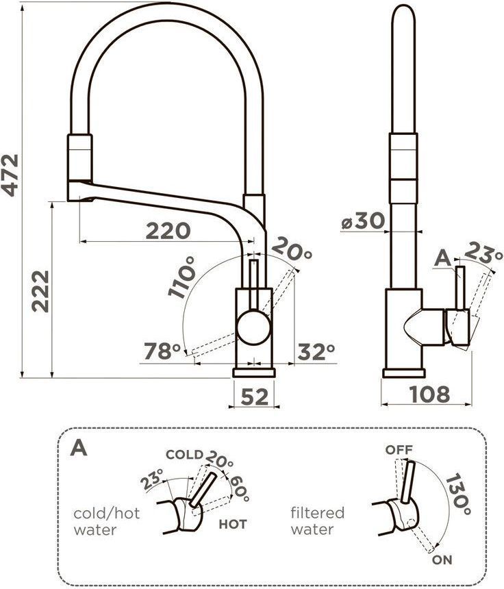 Смеситель для кухни Omoikiri Sinto 2 Plus с подключением фильтра, материал латунь, цвет графит.