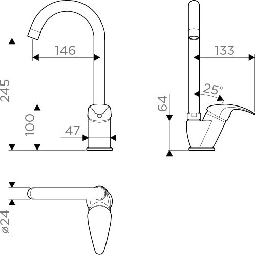 - Смеситель выполнен в современном стиле и снабжен высоким поворотным изливом;