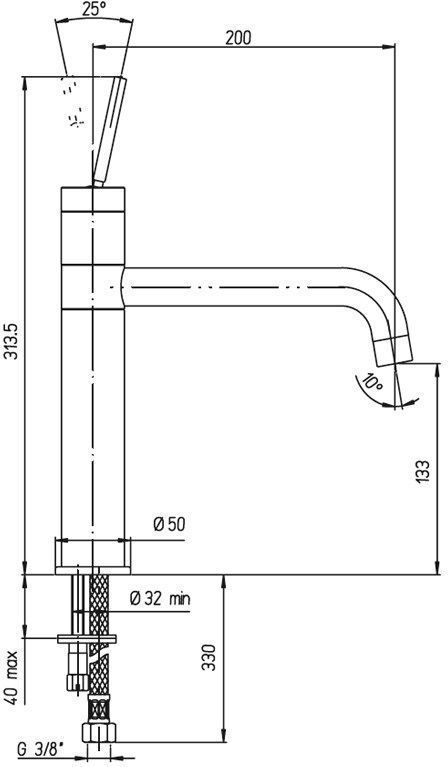 Смеситель для кухни Paini Cox, высота излива 133 мм, материал латунь, цвет хром.