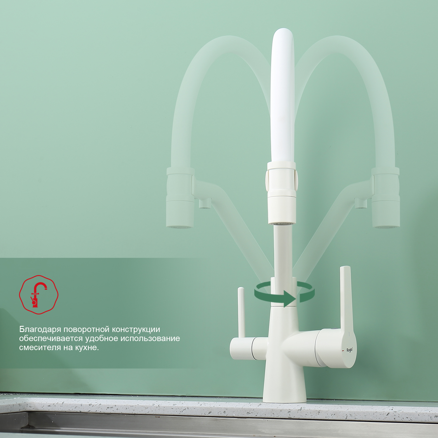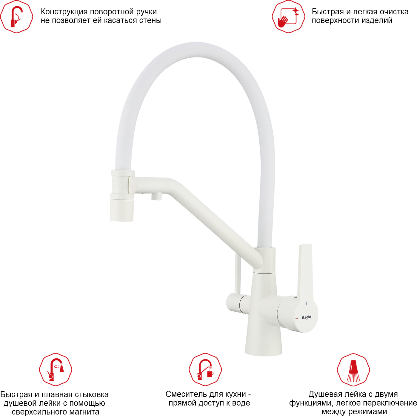 Описание смеситель для кухни,смеситель для кухни с подключением фильтра,смеситель для кухни с гибким изливом Raglo R80.62.08