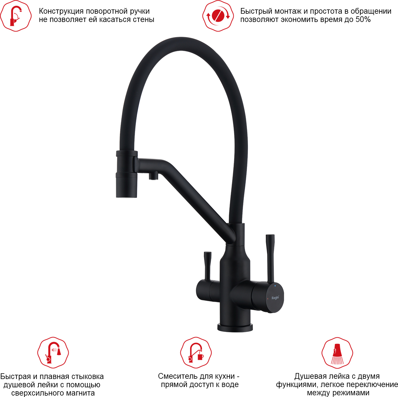 Описание смеситель для кухни,смеситель для кухни с подключением фильтра,смеситель для кухни с гибким изливом Raglo R81.62.06