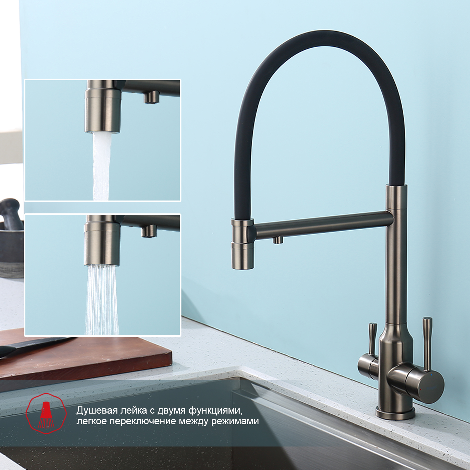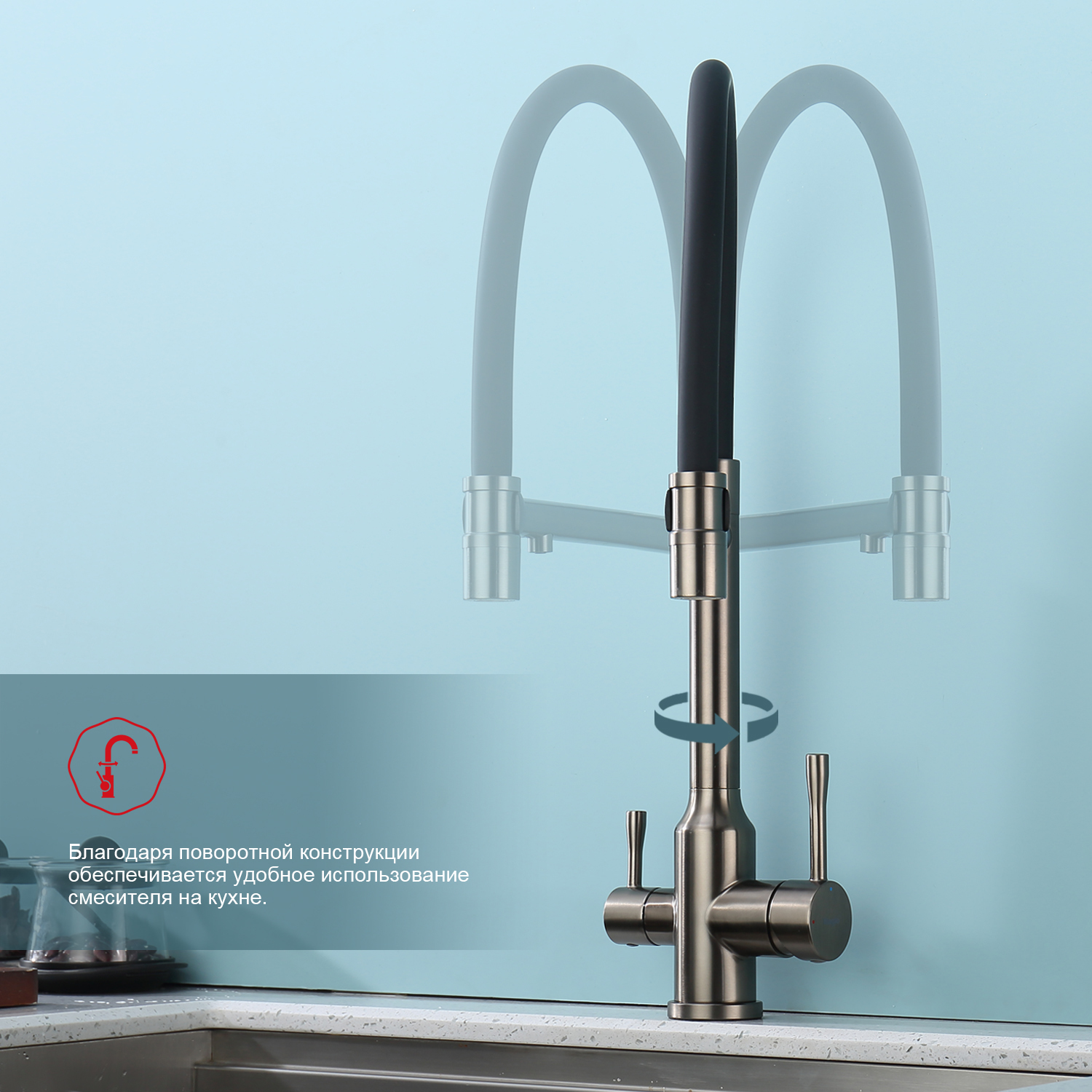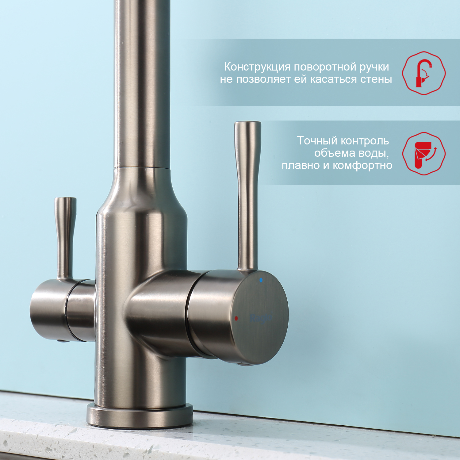 Описание смеситель для кухни,смеситель для кухни с подключением фильтра,смеситель для кухни с гибким изливом Raglo R81.63.09