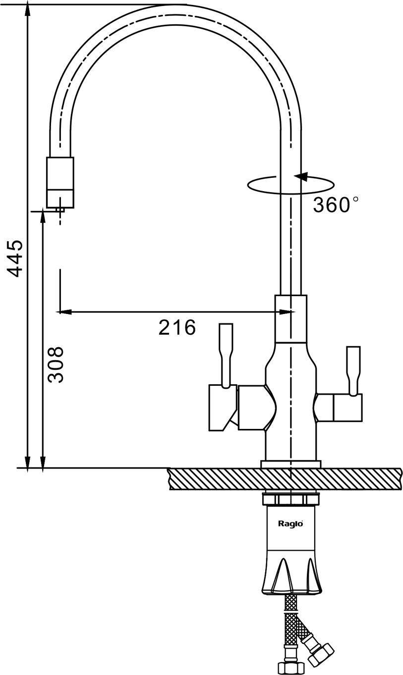 Описание смеситель для кухни,смеситель для кухни с подключением фильтра,смеситель для кухни с гибким изливом Raglo R81.64.03