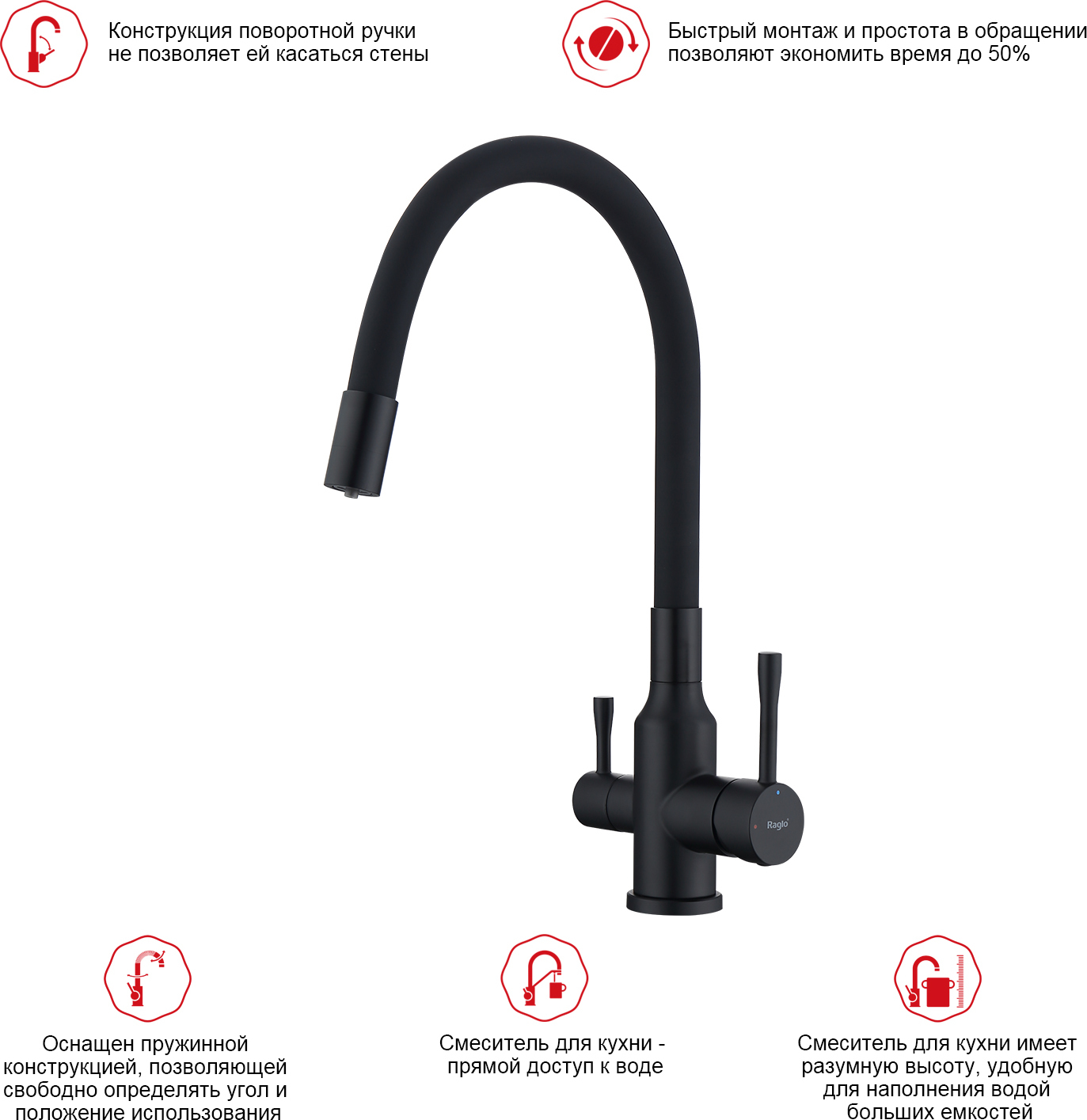 Описание смеситель для кухни,смеситель для кухни с подключением фильтра,смеситель для кухни с гибким изливом Raglo R81.64.06