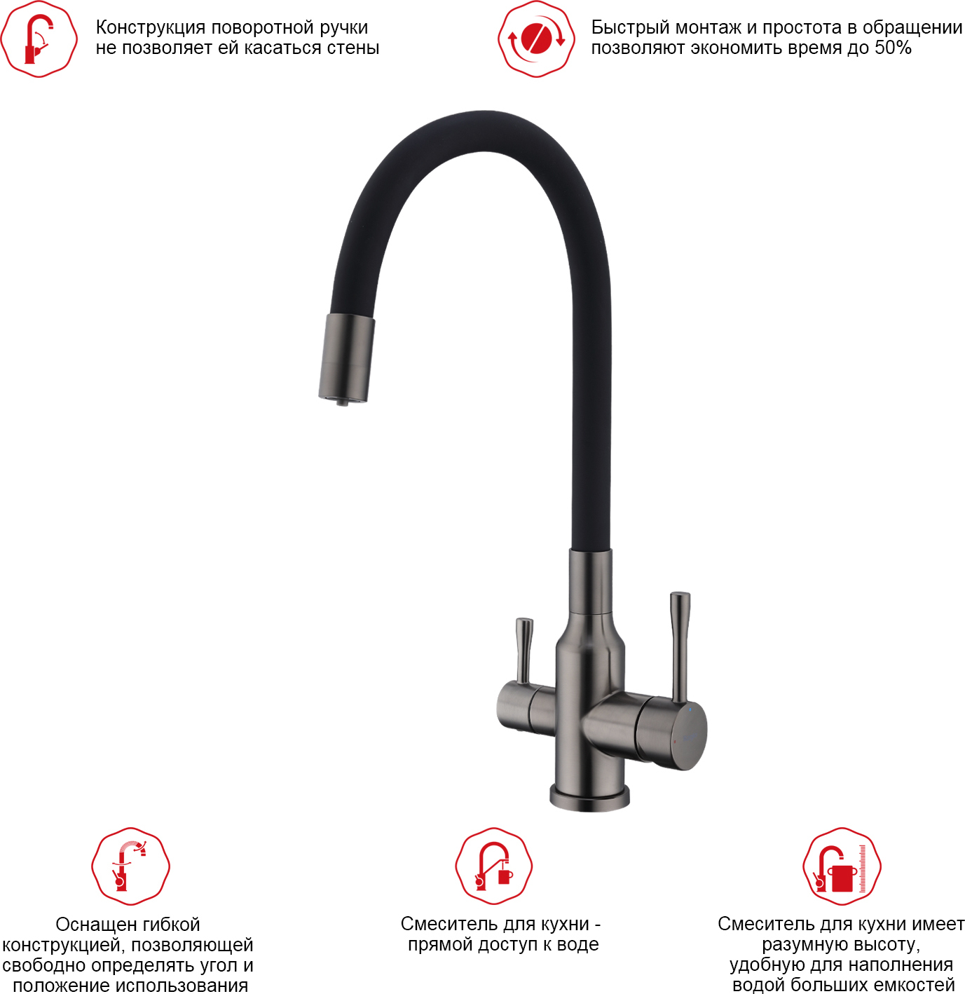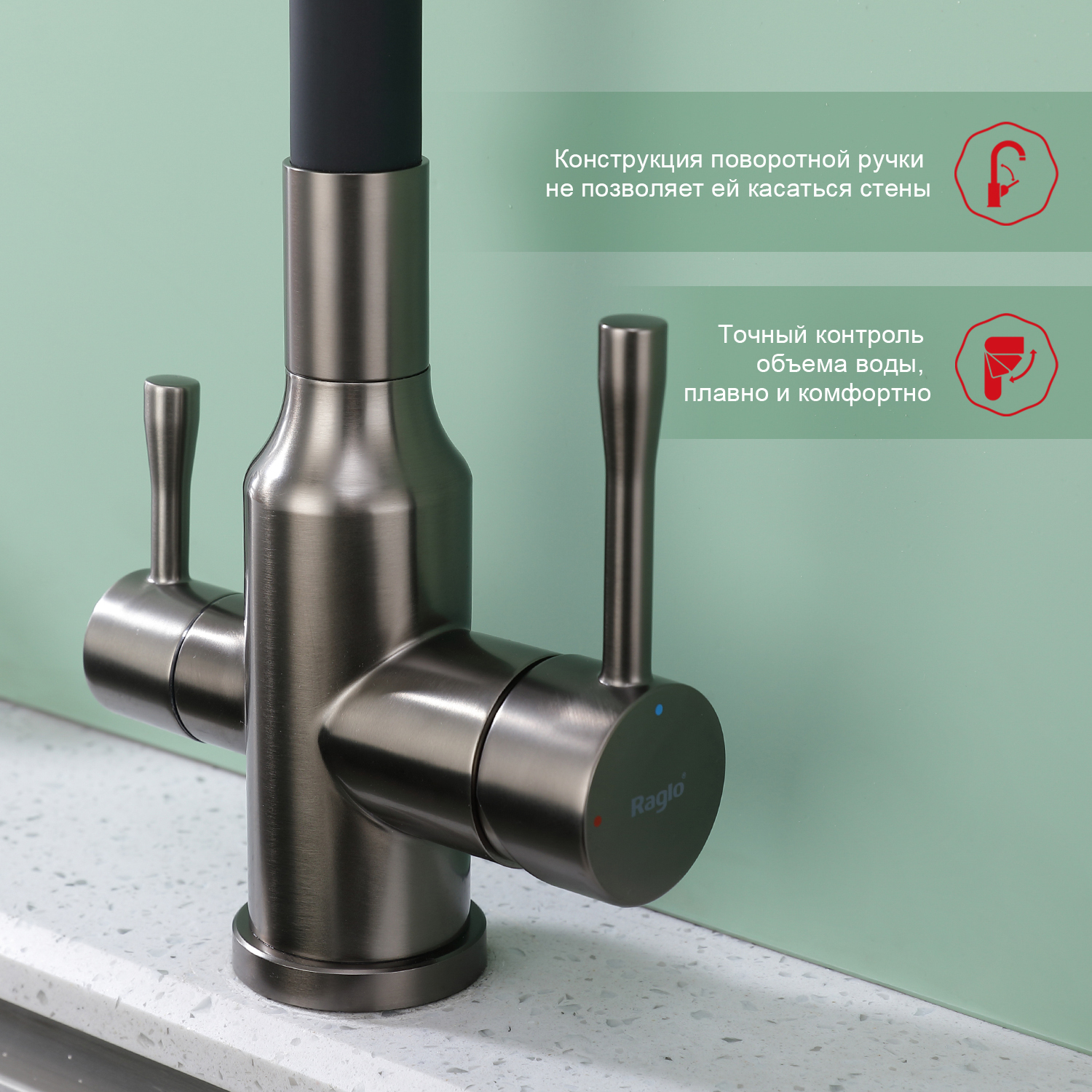 Описание смеситель для кухни,смеситель для кухни с подключением фильтра,смеситель для кухни с гибким изливом Raglo R81.64.09
