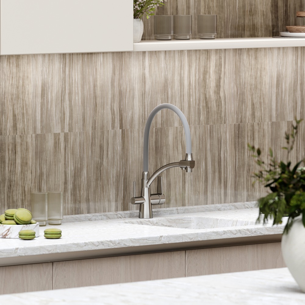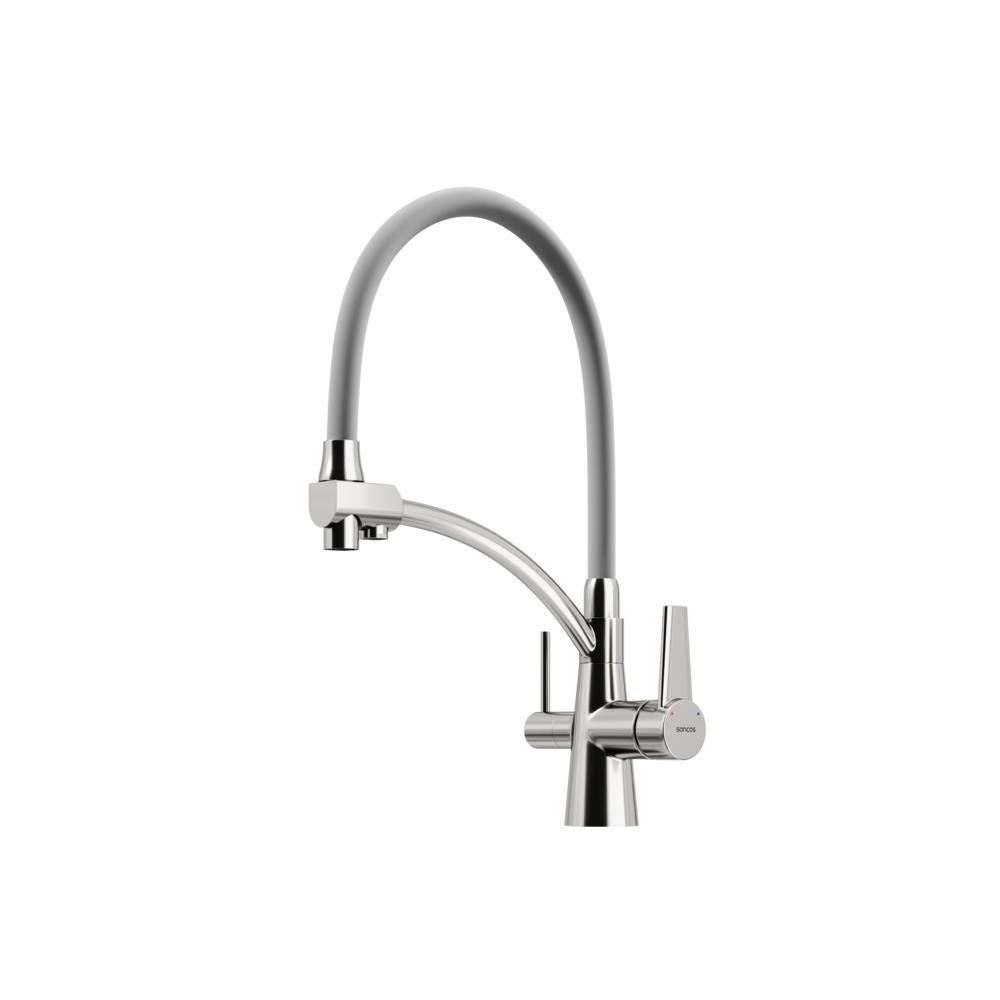 Смеситель для кухни Sancos Eri SC4001BN с гибким, поворотным изливом и подключением фильтра питьевой воды , материал - латунь, цвет - никель/серый.