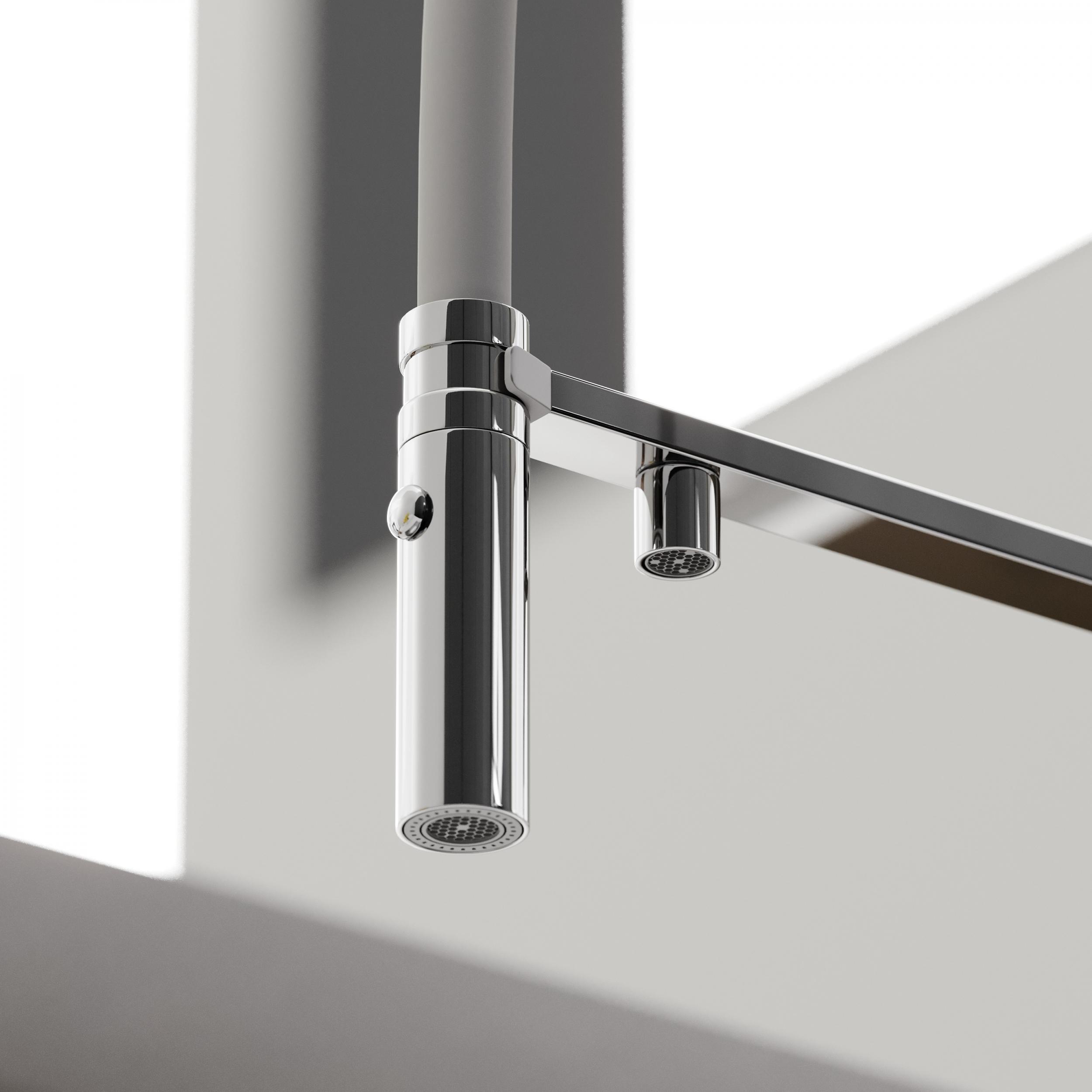 - Излив для фильтрованной воды интегрирован в держатель основного излива