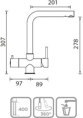 Характеристики смеситель для кухни,смеситель для кухни с подключением фильтра Schock (710082)