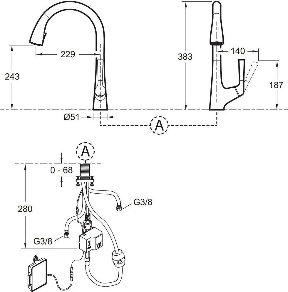 - Рычажное управление / сенсорный смеситель включает поток воды за счет фотоэлемента