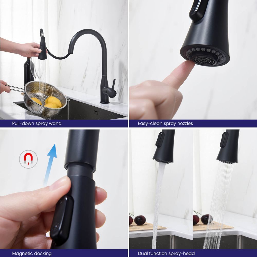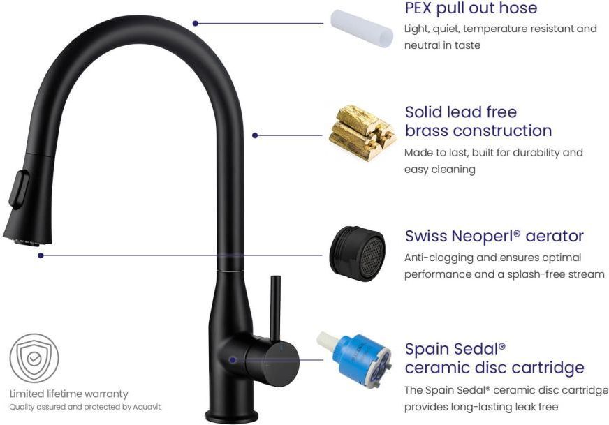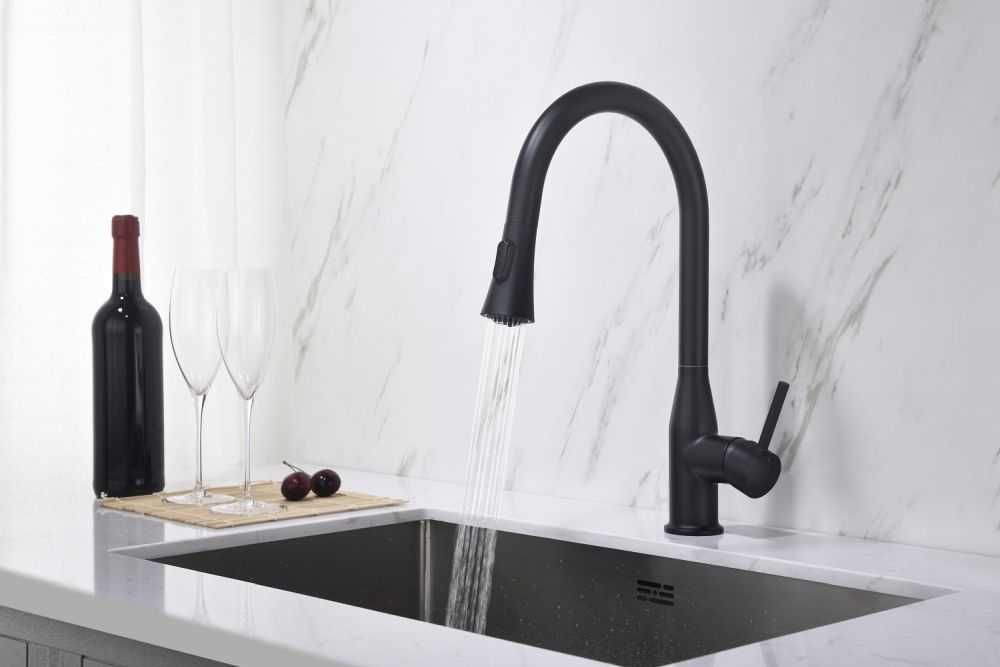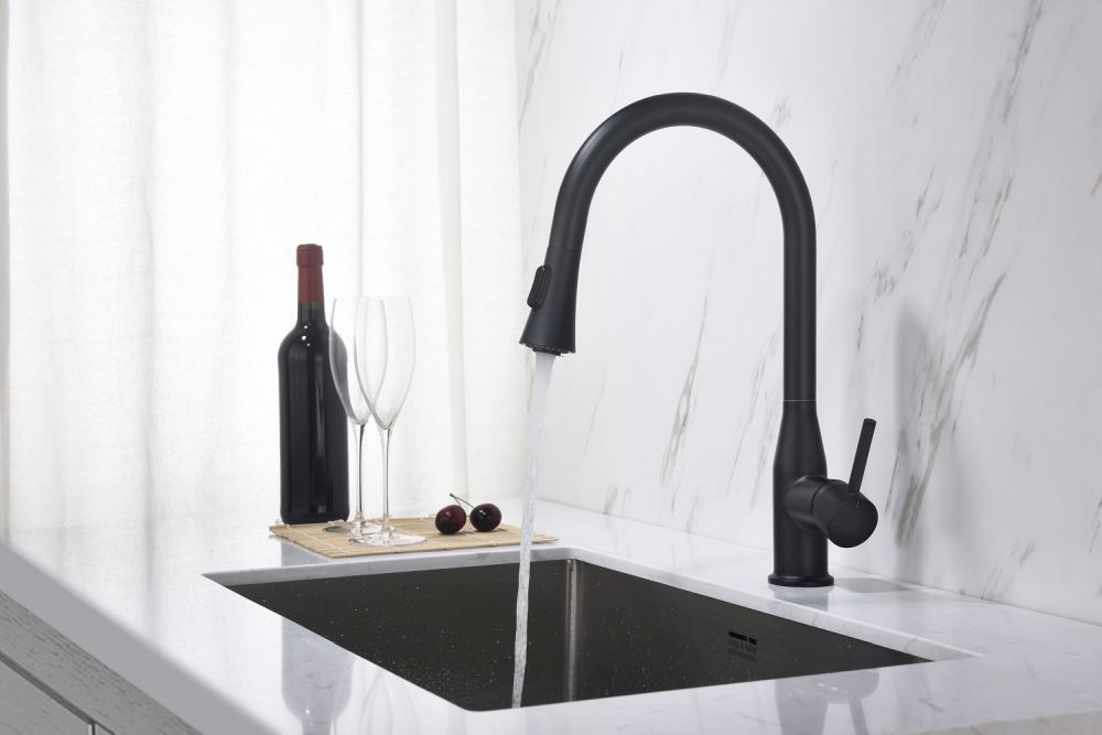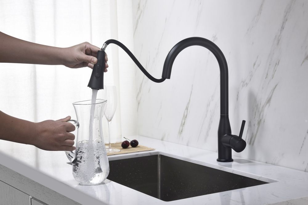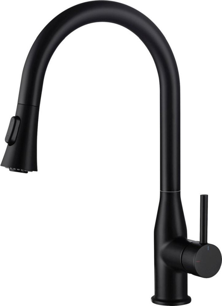 Смеситель для кухни Timo Saona 2336/03FL с выдвижной лейкой и поворотным изливом, материал - латунь, цвет - черный матовый.