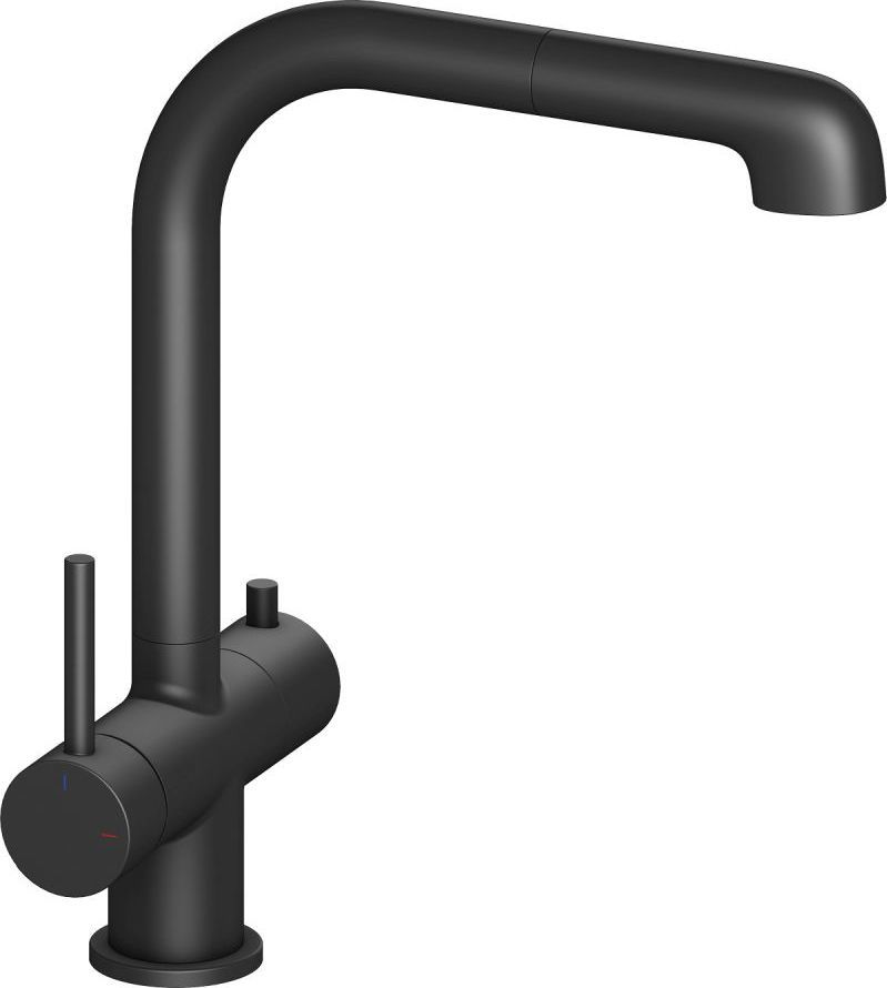 Смеситель для кухни Timo Saona 2346/03FL с подключением питьевой воды и выдвижным изливом, материал - латунь, цвет - черный матовый.