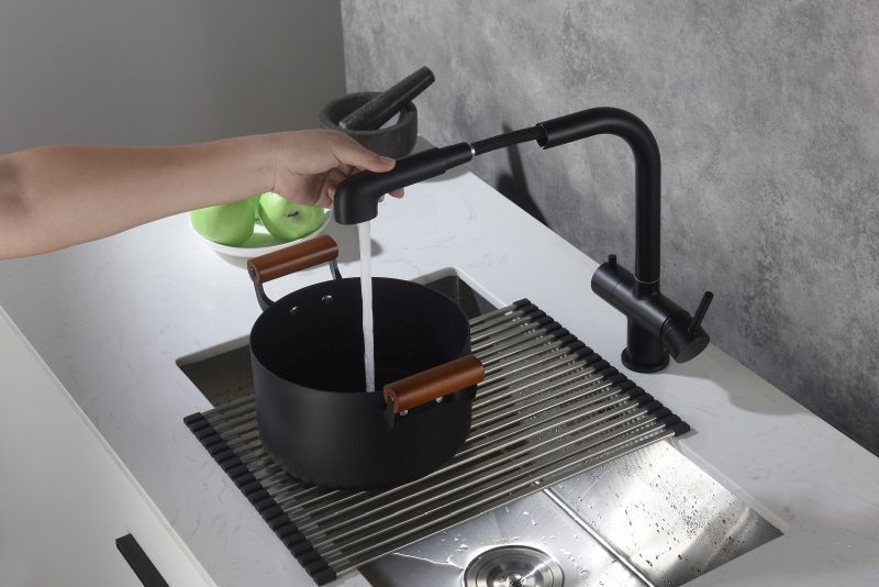 - Смеситель с подключением фильтра для питьевой воды и вытяжной лейкой