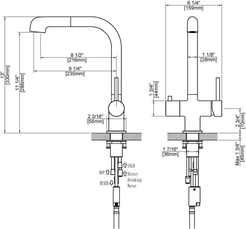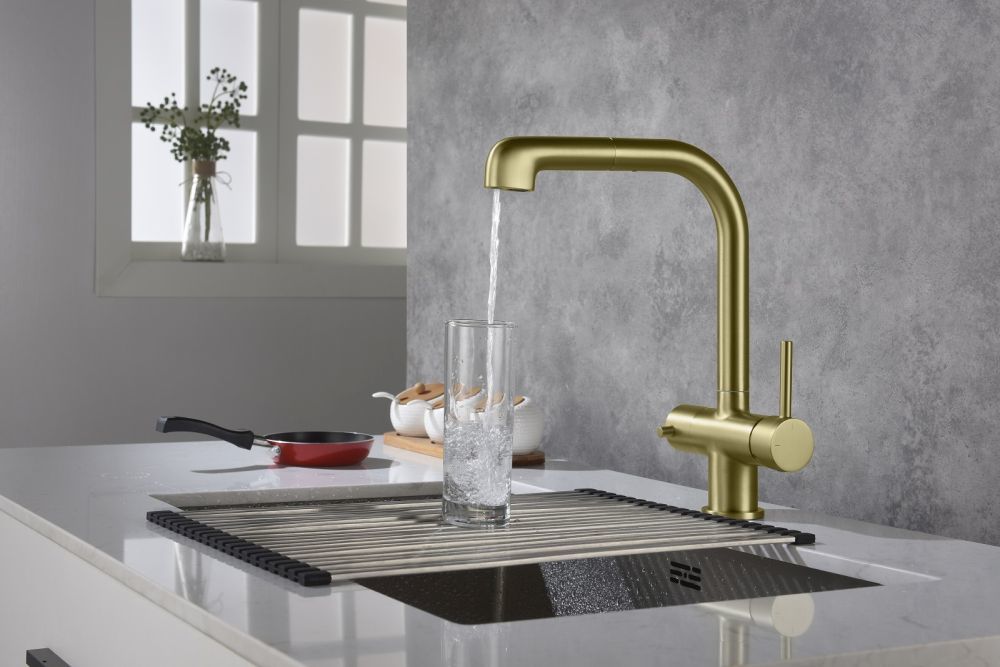 - Смеситель с подключением фильтра для питьевой воды и вытяжной лейкой