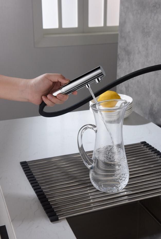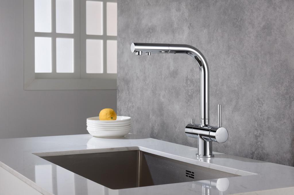- Смеситель с подключением фильтра для питьевой воды и вытяжной лейкой