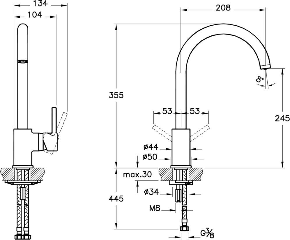 Смеситель для кухни Vitra Minimax S A42091EXP с поворотным изливом, материал - латунь, цвет - хром.