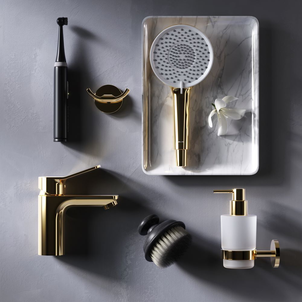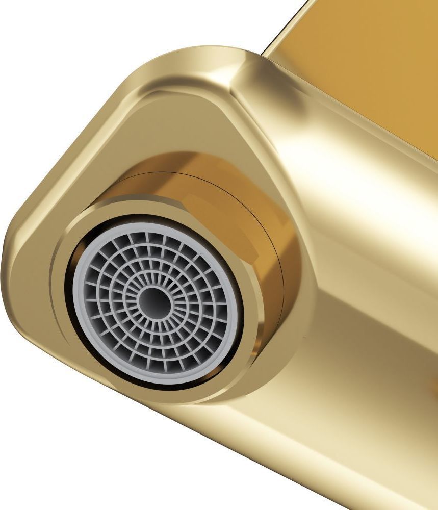 - Настоящее произведение ювелирного искусства в вашей ванной комнате: корпус смесителя равномерно покрыт тончайшим слоем 24-каратного золота. Нанесение драгоценного финишного слоя выполнено методом вакуумного напыления, в процессе которого микрочастицы золота образуют стойкое соединений с латунной основой.