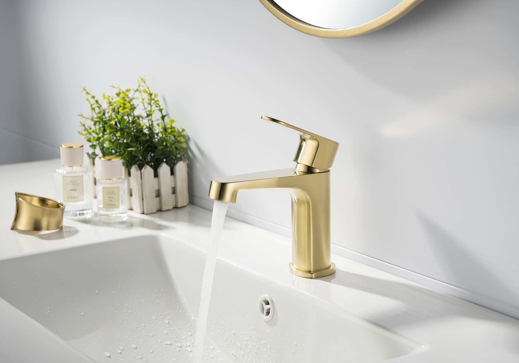 Смеситель для раковины Aquatek Оберон AQ1210BG, золото шлифованное
