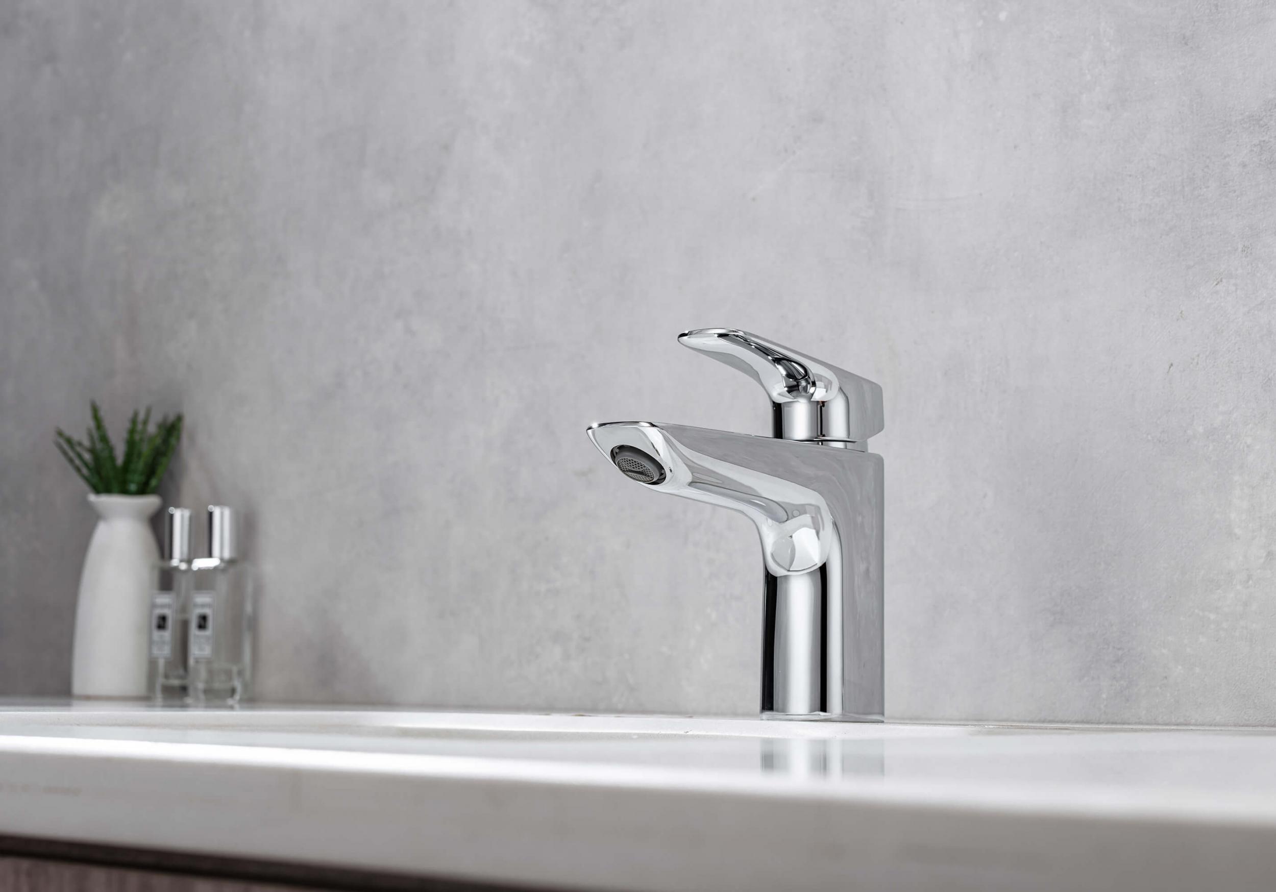 - однорычажная система регулировки силы струи и температуры воды цельный корпус смесителя снижает вероятность протечек