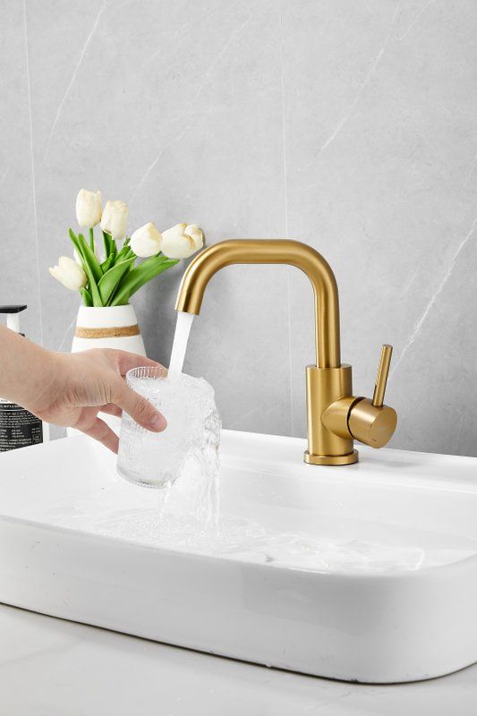 Смеситель для раковины Belz B10810-5, материал нержавеющая сталь, цвет золото.