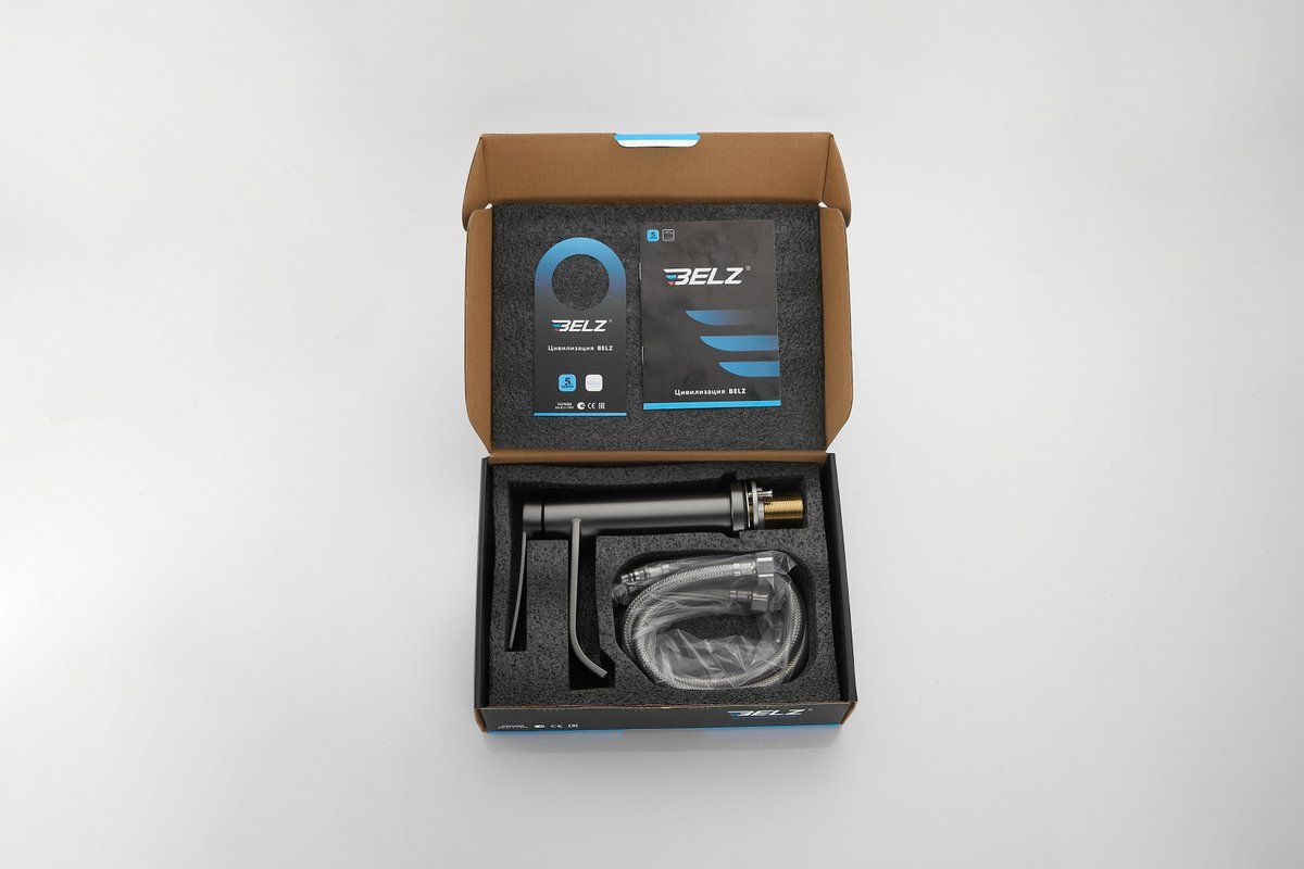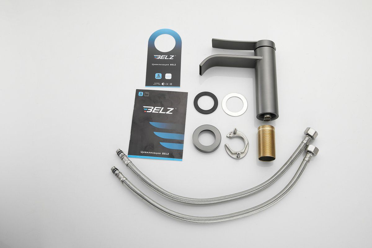 Смеситель для раковины Belz B10812-3, оружейная сталь