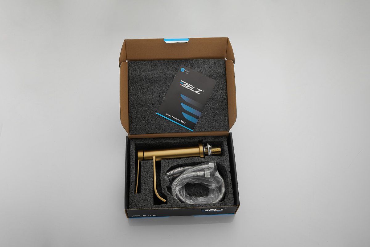 Смеситель для раковины Belz B10812-5, материал нержавеющая сталь, цвет золото.
