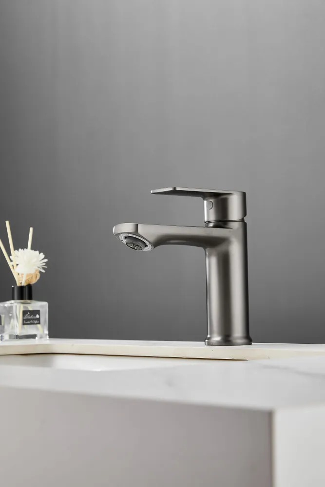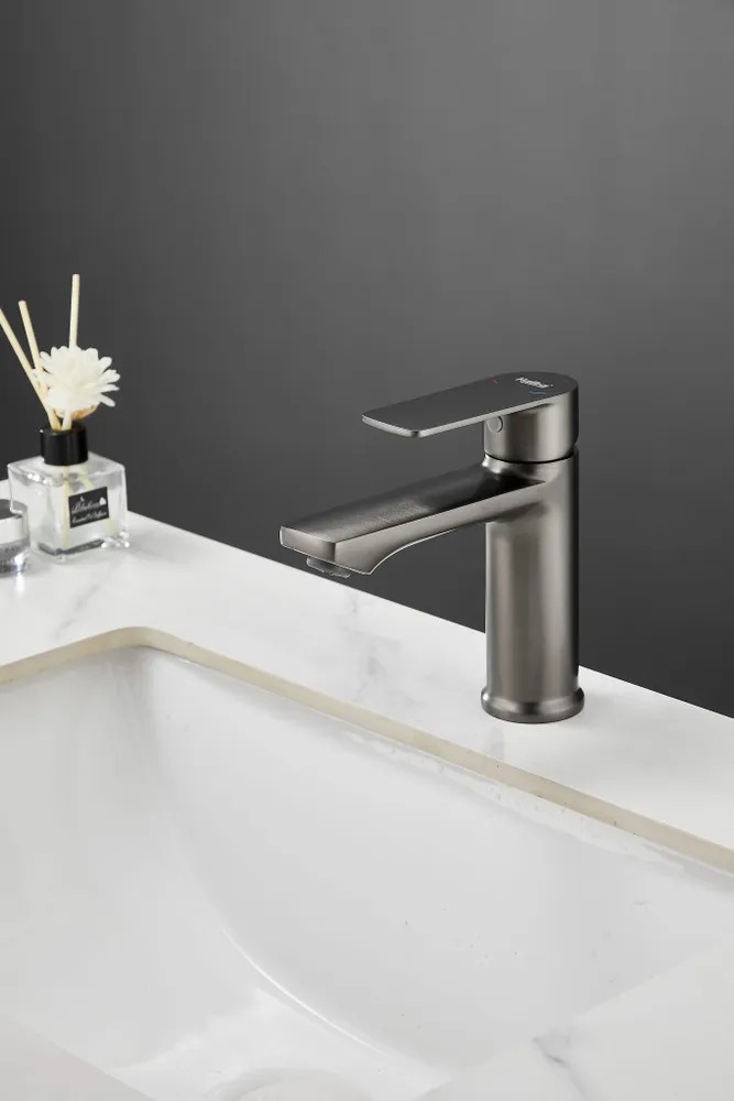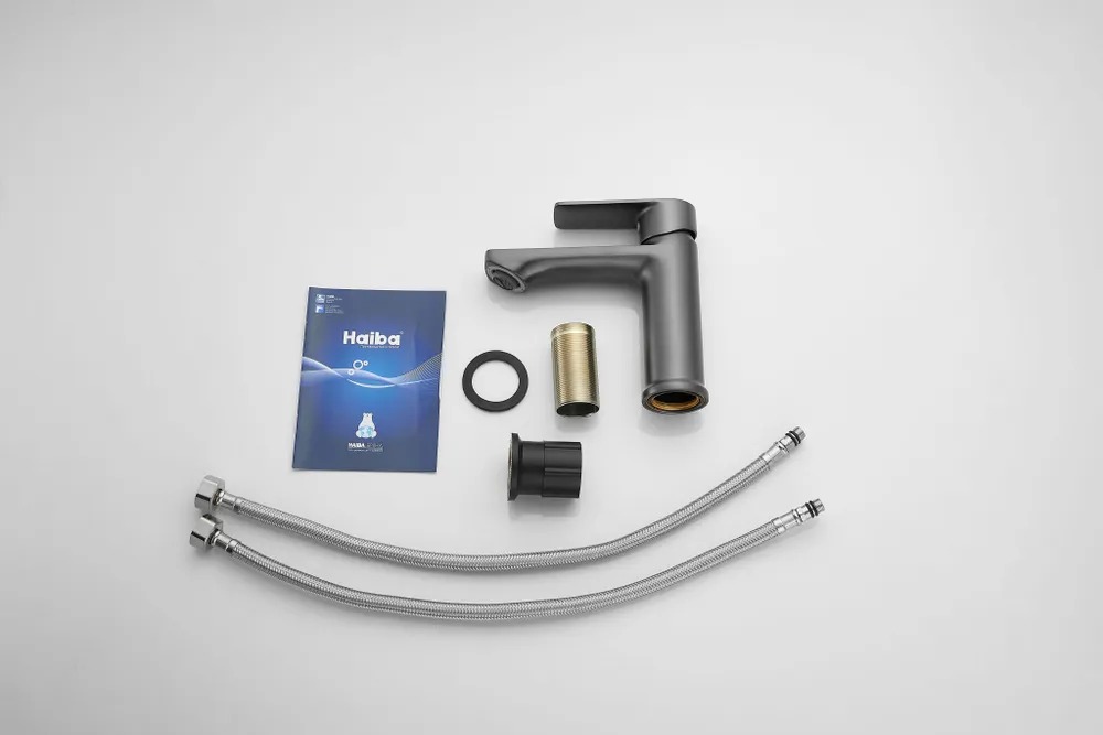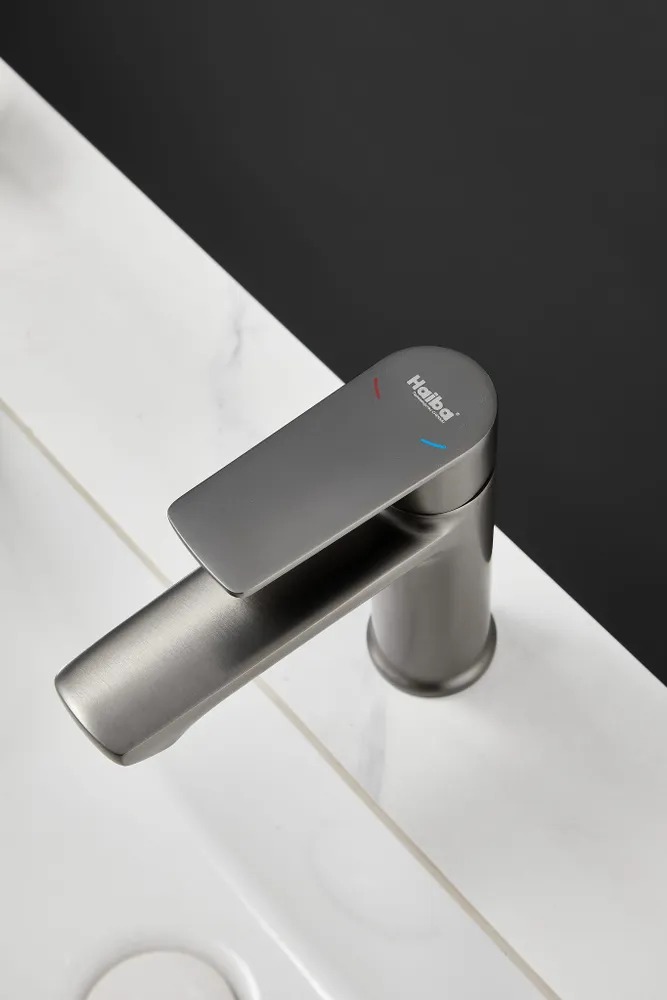 Смеситель для раковины Haiba HB10726-3, материал латунь, цвет графит "оружейная сталь".