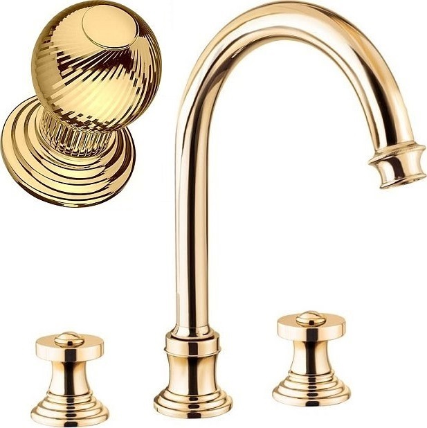 Смеситель для раковины Cezares APHRODITE-BLS2-A-03/24-M с донным клапаном, на 3 отверстия, ручки - металл, материал - латунь, цвет - золото 24 карат.