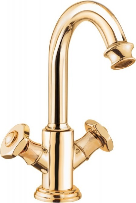 Смеситель для раковины Cezares APHRODITE-LS2-03/24-S1, с донным клапаном, материал - латунь, ручки - металл, цвет - золото 24 карат.