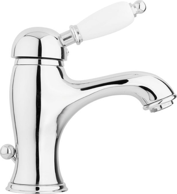 Смеситель для раковины Cezares ELITE-LSM1-01-Bi с донным клапаном, материал - латунь, цвет - хром, ручка - белая.
