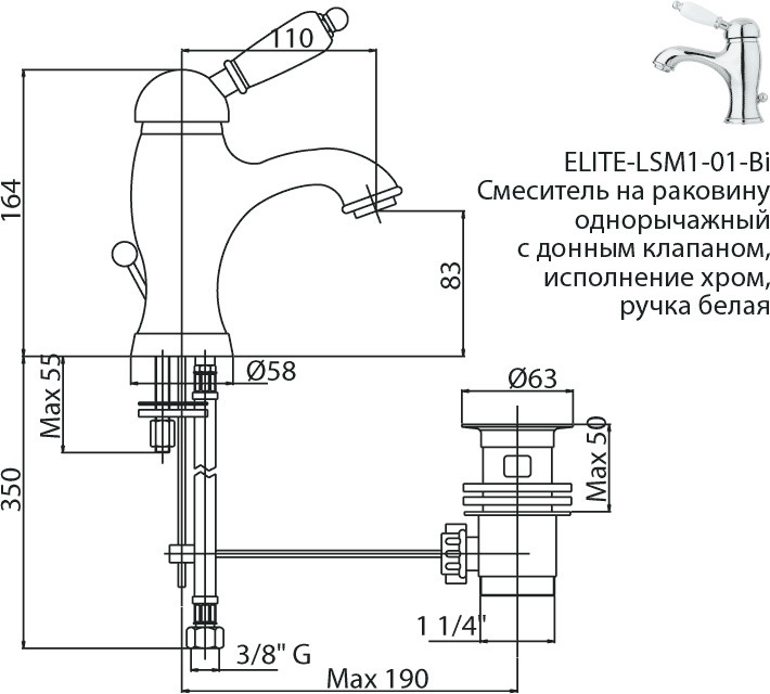 Характеристики смеситель для раковины Cezares (ELITE-LSM1-01-Bi)
