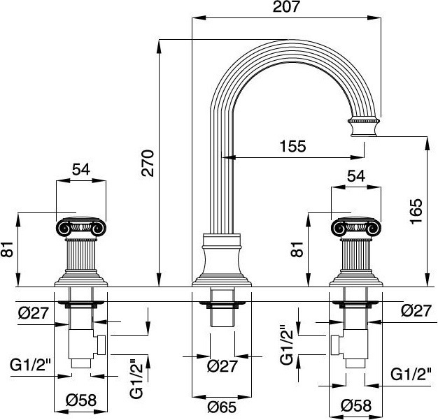 Характеристики смеситель для раковины Cezares (OLIMP-BLS2-A-03/24-O)