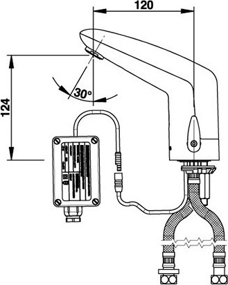 - Автоматическое закрытие электроклапана после 30 сек. работы смесителя, а также в случае неисправности датчика (фотоэлемента) или износа аккумулятора/перебоя питания