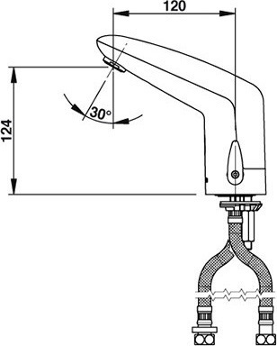 - Автоматическое закрытие электроклапана после 30 сек. работы смесителя, а также в случае неисправности датчика (фотоэлемента) или износа аккумулятора/перебоя питания