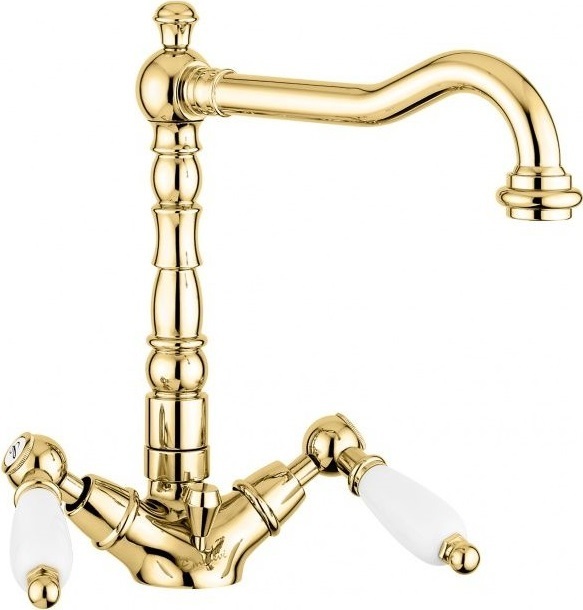 Смеситель для раковины Emmevi Deco Ceramic OR121613 с донным клапаном, материал - латунь, цвет - золото.
