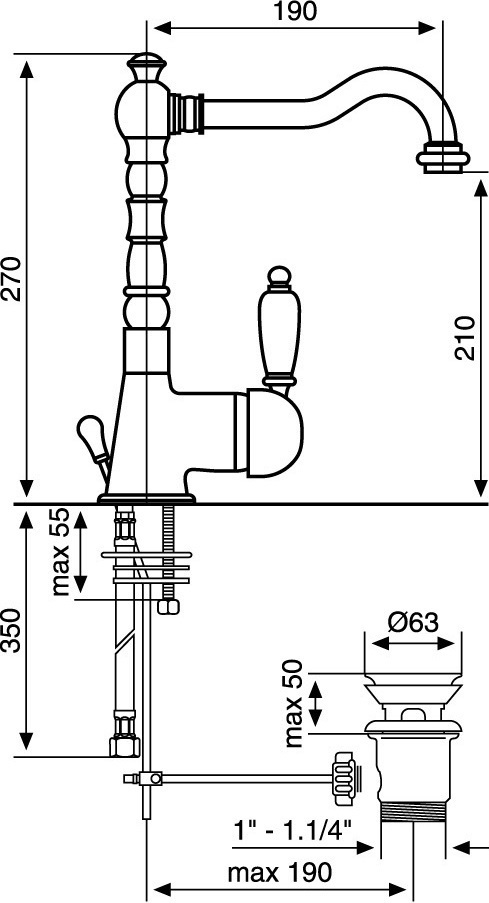 Характеристики смеситель для раковины Emmevi (OR40513)