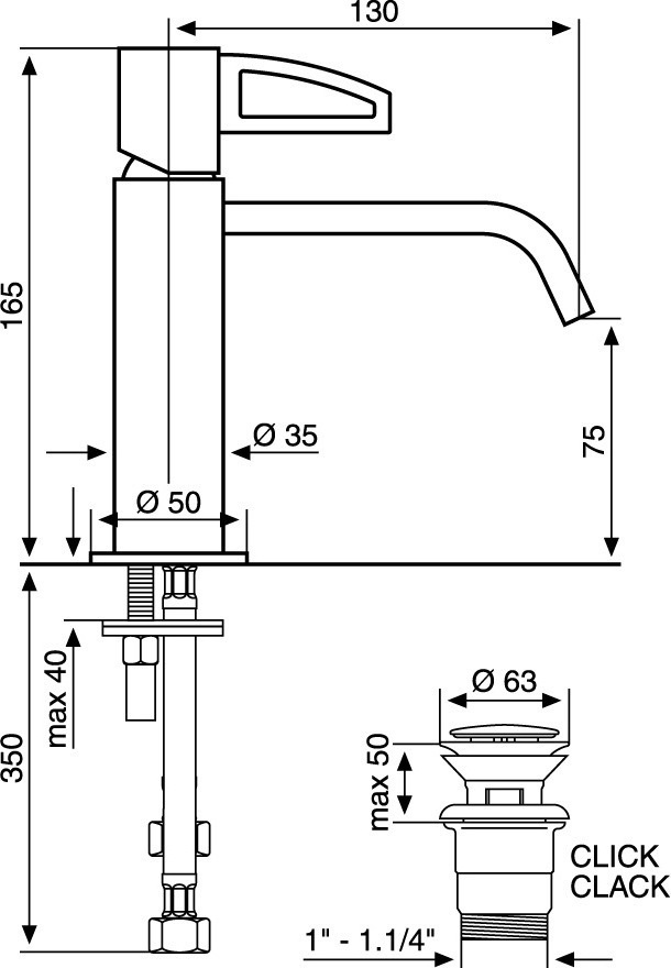 Смеситель для раковины Emmevi Minu CR83003LA с донным клапаном "click-clack", материал - латунь, цвет - хром.