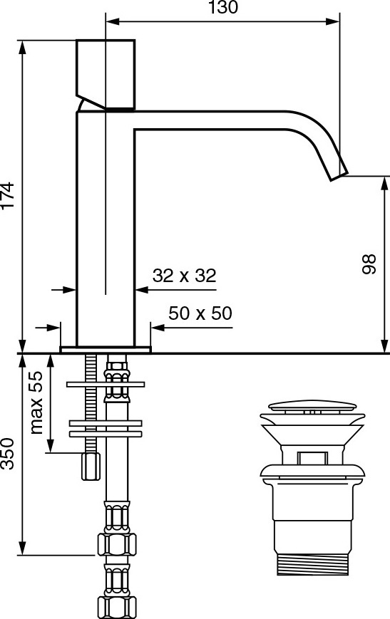 Смеситель для раковины Emmevi Siris CR47003 с донным клапаном «click-clack», материал - латунь, цвет - хром.